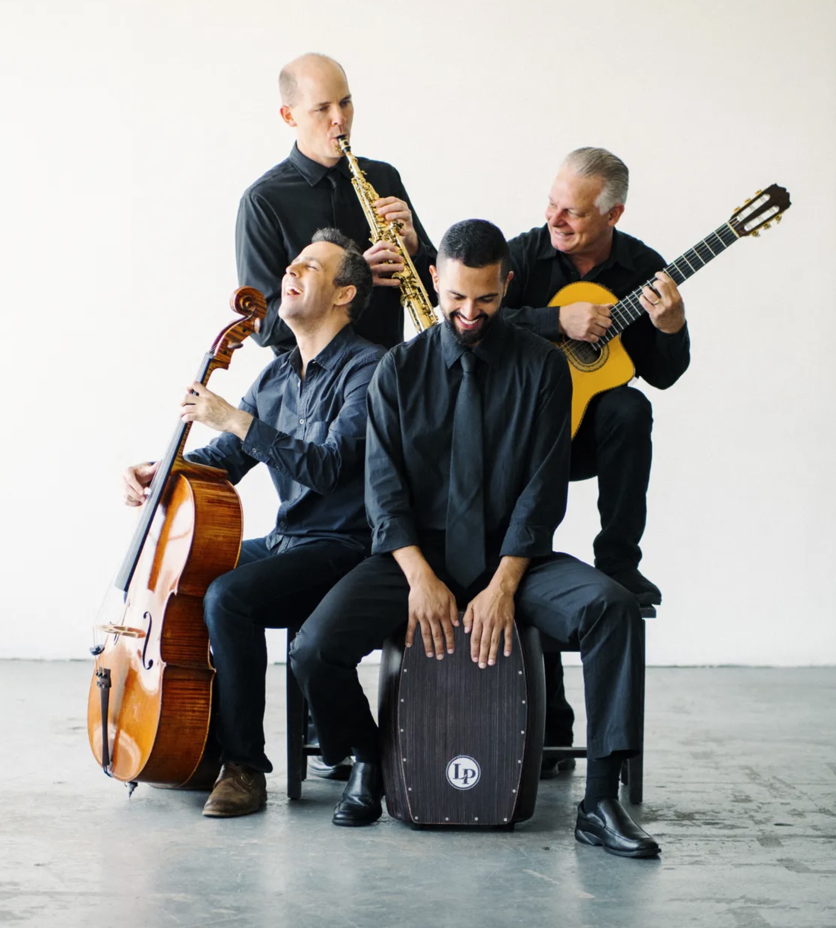 Performer Bio: Winners of the Beverly Hills National Auditions, two South Arts Jazz Road Tour Grants and a South Arts Jazz Road Creative Residency Grant, Quarteto’s master musicians create emotionally-charged soundscapes with instruments and sensibilities that represent very different world cultures. Their unique instrumentation – soprano saxophone/alto flute, cello, guitar and hand percussion richly colors their wide-ranging repertoire, from Heitor Villa-Lobos’ “Bachianas Brasileiras” and Chick Corea’s “Children’s Song No. 6” to Traditional Macedonian “Gadjarsko” and original works “Hector, Desmond and Titus”, “Rain Song” and “Dizer O Que”.